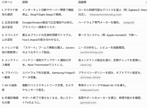 スマートホームの後悔を防ぐため、以下の8つのパターンを避けましょう。各パターンは、ユーザー体験から導き出されたものです。↓